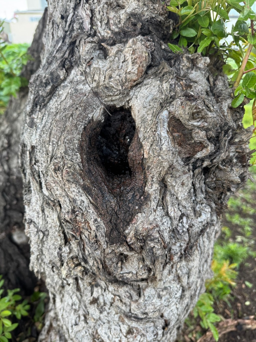 At first I thought this tree knot looked a bit like a flying fox in hiding. The second time I looked at the picture, I thought about a mysterious serpent peeking out. Now though it’s figurative “eye” looks more sinister. Of course, the “eye” is really just some white crusty gunk.