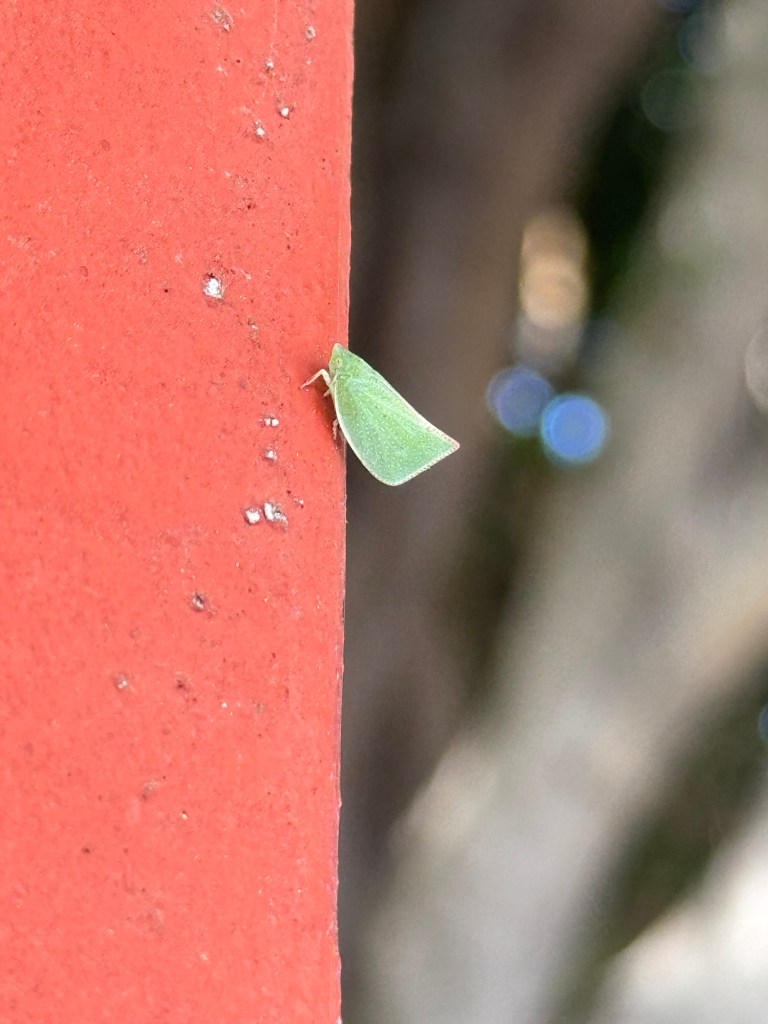 I must confess that, at first, I thought this was just a leaf that got stuck to a pole. Obviously, I was wrong. Once I zoomed in I could see the little details in the wings.