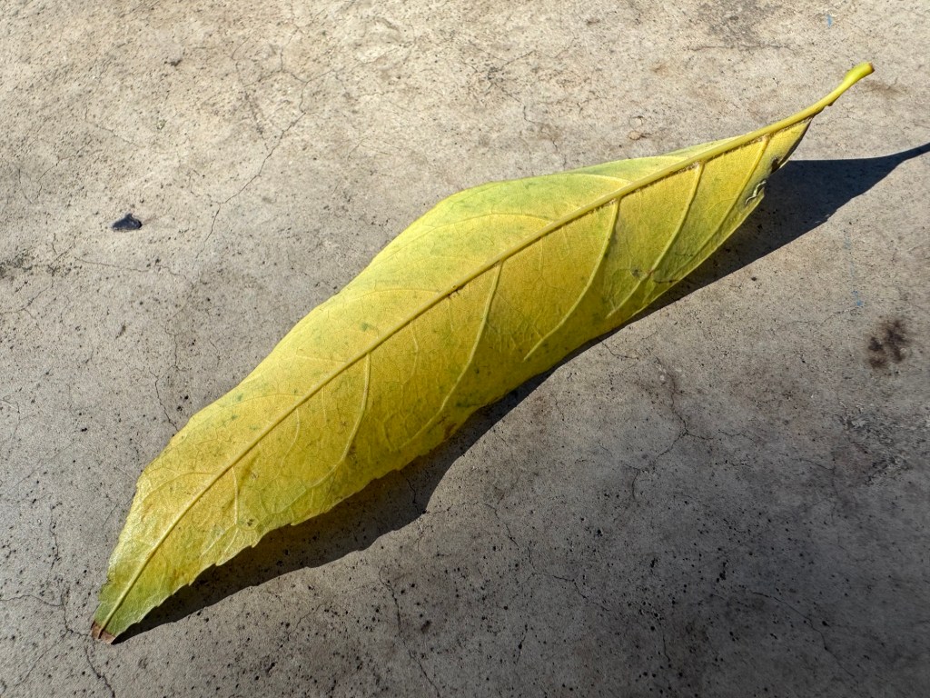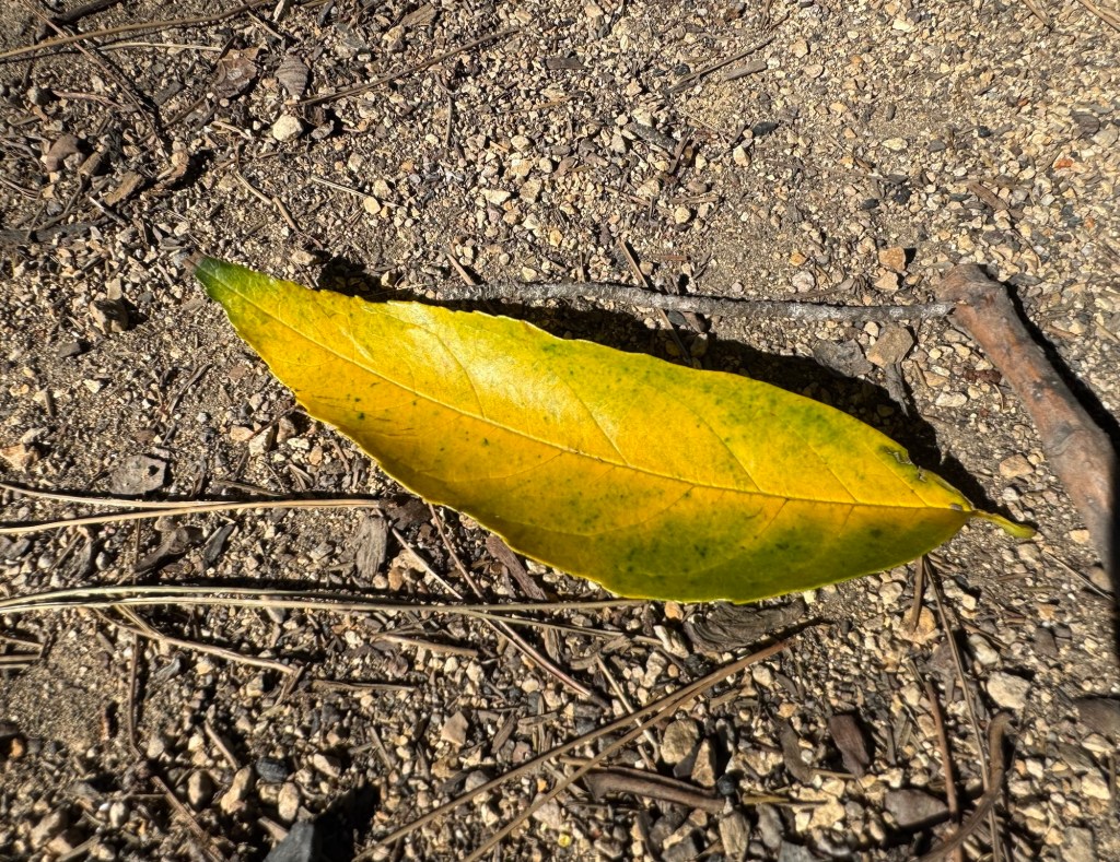 I was on an outing with some students. I spotted this leaf on the ground. The texture is really interesting to me but I have no idea what tree it’s from. For some reason it also made me think of mangos.