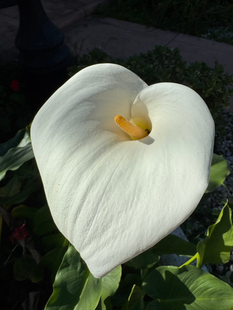 A single Calla Lily from my yard. Not sure why the others didn’t bloom. Apparently it’s also known as a “white arum lily”.